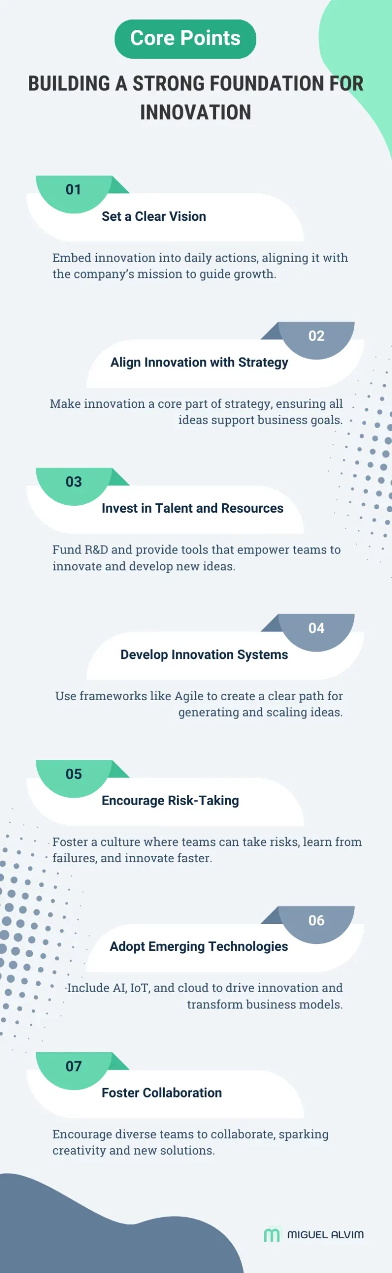 Each of these core points lays the groundwork for a thriving innovation culture. By focusing on these fundamentals, senior IT leaders can drive sustainable growth and position their organizations as leaders in the market.
